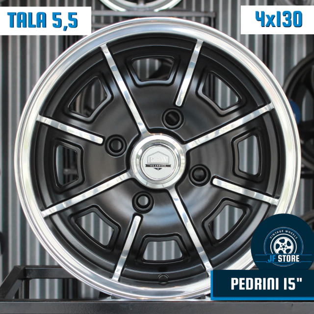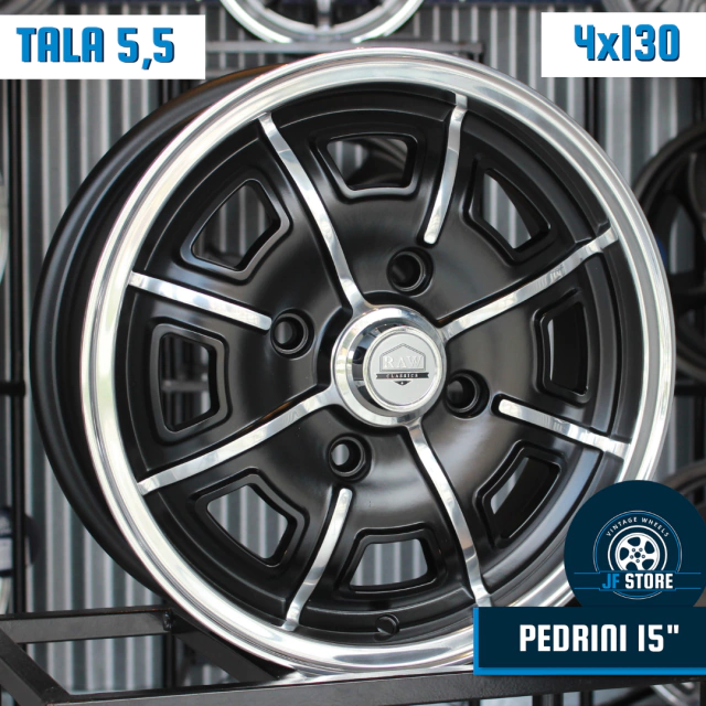 A Pedrini é um modelo de roda do Porsche 914 dos anos 70, e foi lançada pela Raw Classics em 2020. O projeto foi muito fiel em detalhes e configurações, sendo fabricada em Aro 15" e com furção 4x130. Aqui na JF STORE ela está disponível à pronta entrega, este anúncio refere-se ao produto com as seguintes configurações: