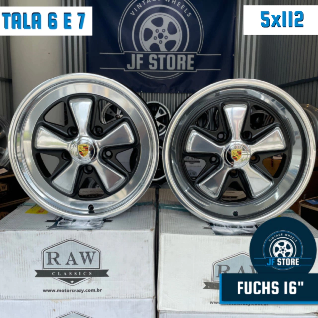 Lançadas em 1966 junto ao Porsche 911S as rodas Fuchs foram as primeiras rodas em alumínio forjado do mundo. Este modelo de roda foi criado pela empresa alemã Otto Fuchs, sua criação teve ínicio com uma demanda da Porsche que após o 911 buscava um modelo de roda mais esportivo, leve e resistente para o seu novo Porsche 911S. Este modelo é um dos mais cobiçados no mundo Aircooled, atualmente reproduzido pela marca Raw Classics em diversas dimensões. Aqui na JF STORE ela está disponível à pronta entrega, este anúncio refere-se ao produto com as seguintes configurações: